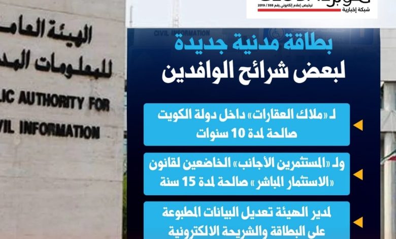 الكويت تُصدر قرارًا بشأن بطاقة مدنية إلكترونية لغير الكويتيين بمدد تصل إلى 15 سنة