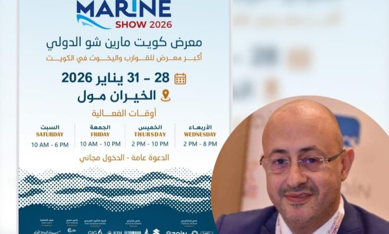 وأضاف سمارة أن المعرض يأتي للمساهمة في دفع عجلة التنمية وتشجيع السياحة في دولة الكويت حيث تنطلق فعاليات معرض “كويت مارين شو ” الدولي للقوارب واليخوت تحت رعاية الشيخ حمود جابر الأحمد الجابر الصباح محافظ الأحمدي، في مراسي الخيران مول في الفترة ما بين 28 – 31 يناير 2026 ، مبيناً أنه لأول مرة في الكويت تعود معارض القوارب واليخوت بعد غياب 7 سنوات، حيث يشارك في هذه النسخة أكثر من 80 جهة حكومية ومحلية وإقليمية وعالمية وأكثر من 90 قطعة بحرية من مصنعين محليين وخليجيين وعالميين.