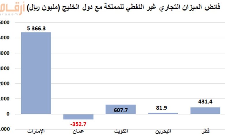 6.1 مليار ريال فائض الميزان التجاري بين السعودية ودول الخليج