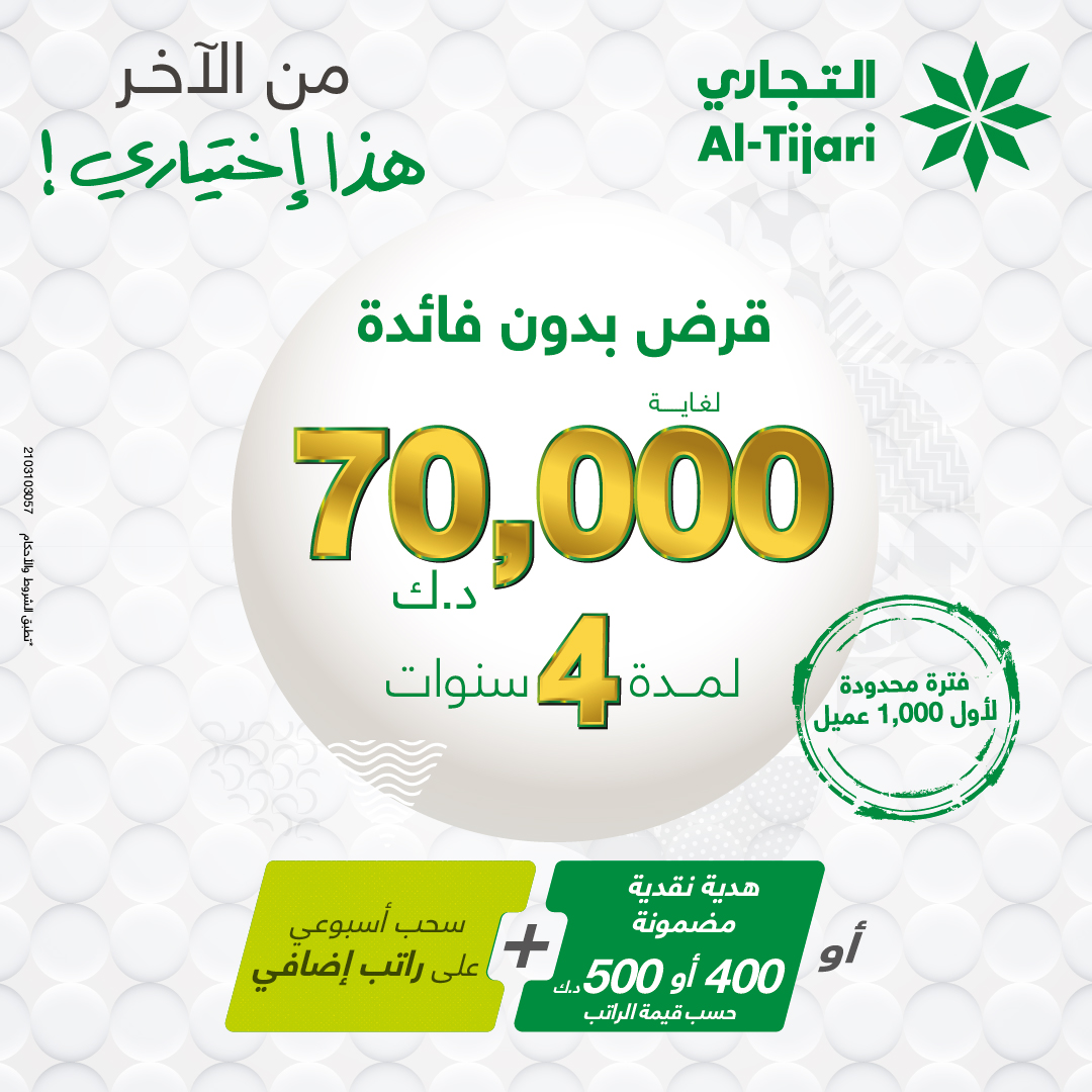وأوضح البنك بأن حملة “أكثر من راتب” موجهة للعملاء الكويتيين الذين يقومون بتحويل رواتبهم البالغه -/ 500دينار كويتي أو أكثر على البنك وبصفة خاصة العاملين في القطاعين الحكومي والنفطي والشركات المدرجة لدى البنك ، و من مزايا هذه الحملة الحصول على هدية نقدية فورية تبلغ قيمتها من 400/- إلى 500/- دينار كويتي أو قرض بدون فائدة لفترة تصل إلى أربع سنوات ولغاية 70 ألف دينار ، وسيكون هناك سحب أسبوعي للعملاء الكويتيين الحاليين والجدد ممن يقومون بتحويل رواتبهم على البنك لربح مبلغ يعادل راتب واحد من الرواتب التي يتقاضونها شهريا. كما يمكن للعملاء الكويتيين المتقاعدين بالإضافة الى المقيمين الذين يقومون بتحويل مديونيتهم إلى البنك الحصول على هدية نقدية تعادل 2% من قيمة المديونية المحولة ولغاية 1000 دينار كويتي.