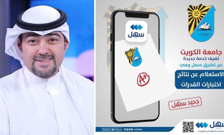 وأوضح المتحدث الرسمي لتطبيق سهل للخدمات الحكومية الالكترونية يوسف كاظم أن جامعة الكويت أطلقت خدمة إلكترونية جديدة عبر التطبيق تتمثل في الاستعلام عن نتائج اختبارات القدرات.