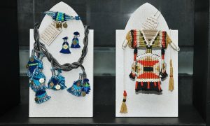 الكويت – غلوبل – بأسلوب عصري وحديث أبدعت معلمات التربية الفنية في وزارة التربية باستخدام الحياكة والمنسوجات التراثية اليدوية لصناعة الحلي والمجوهرات وعقود الزينة للتعريف بالهوية الثقافية القديمة في الكويت ضمن أروقة معرض (خيوطنا ذهب).