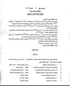 الكويت – غلوبل – صدر مرسوم رقم 22 لسنة 2023 بتشكيل مجلس إدارة ” الهيئة العامة للغذاء والتغذية وذلك لمدة 4 سنوات.