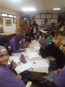 وورشة الفن التشكيلى تدريب الفنان اشرف كمال وتهدف الى تعليم المتدربين قواعد الرسم بإستخدام مختلف الخامات كالأقلام الرصاص والوان الجواش .