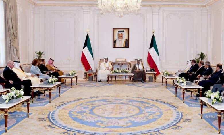 الكويت – غلوبل- استقبل سمو نائب الأمير وولي العهد الشيخ مشعل الأحمد الجابر الصباح حفظه الله بقصر بيان صباح اليوم معالي وزير الإعلام والثقافة ووزير الدولة لشؤون الشباب عبدالرحمن بداح المطيري والسادة أصحاب المعالي والسعادة وزراء وممثلي وزراء إعلام الدول العربية والخليجية المشاركين في اجتماعات الدورة العادية ال98 للجنة الدائمة للاعلام العربي والدورة العادية ال16 للمكتب التنفيذي لمجلس وزراء الإعلام العرب وذلك بمناسبة انعقادهما بدولة الكويت.