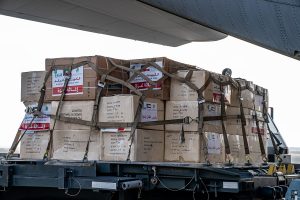 الكويت – غلوبل – أقلعت الطائرة الإغاثية الـ38 من الجسر الجوي الكويتي اليوم الاثنين متجهة إلى مطار العريش محملة بمساعدات إغاثية من ملابس ثقيلة وفرش للنوم (سليب باغ) وبطانيات تزن 10 أطنان لمجابهة فصل الشتاء في غزة بتنظيم جمعية السلام للأعمال الإنسانية والخيرية بالشراكة مع الهيئة الخيرية الاسلامية العالمية وجمعية آيات الخيرية.