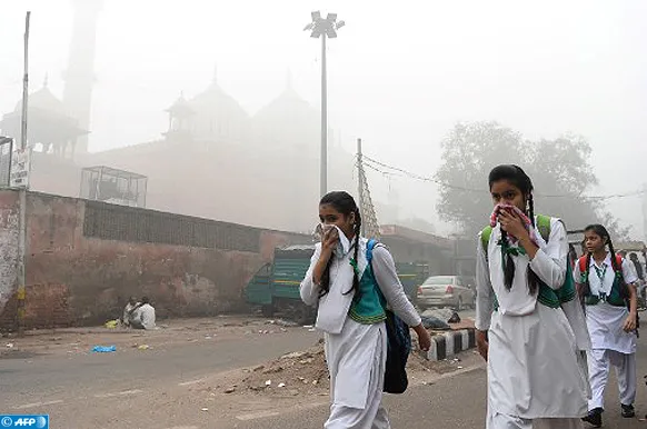 اوضحت السلطات الهندية اليوم الاحد ارتفاع مستويات تلوث الهواء في العاصمة نيودلهي الى خطر وسط موجة برد شديد وضباب كثيف شمال الهند.