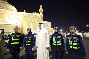 وخلال الجولة اطمأن النواف على مستوى الخدمات المقدمة للمصلين لضمان توفير كافة سبل الراحة، وأشاد سموه بالجهود الكبيرة المبذولة التي تهدف الى التيسير على مرتادي المسجد لأداء الفرائض والنوافل بخشوع وسكينة في هذه الليالي الفضيلة.