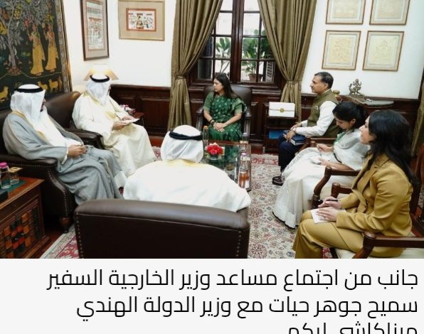 الكويت- غلوبل-  بحث مساعد وزير الخارجية لشؤون آسيا في وزارة الخارجية الكويتية السفير سميح جوهر حيات مع وزير الدولة للشؤون الخارجية الهندي ميناكاشي ليكهي العلاقات الثنائية بين البلدين وسبل تعزيزها.