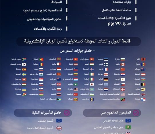 السعودية تدرج ثلاث دول جديدة ضمن قائمة المؤهلين لتأشيرة الزيارة الإلكترونية