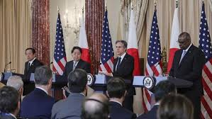 وأكد وزيرا الخارجية الأمريكي انتوني بلينكن والدفاع لويد اوستن خلال اجتماعهما مع نظيريهما اليابانيين يوكو كاميكاوا ومينورو كيهارا في عاصمة اليابان طوكيو، أهمية التحالف الأمريكي-الياباني باعتباره حجر الزاوية للسلام والأمن والازدهار في منطقة المحيطين الهندي والهادئ وخارجها.