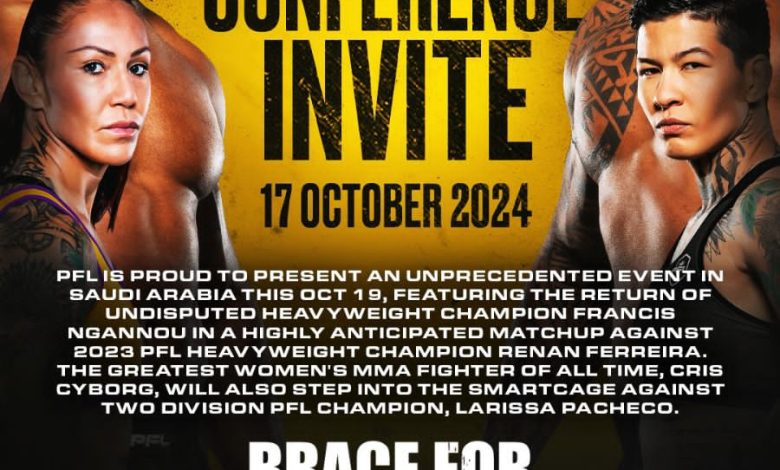 الرياض – غلوبل  – تعقد رابطة المقاتلين المحترفين (PFL) لمنطقة الشرق الأوسط وشمال إفريقيا, مؤتمراً صحفياً عند الساعة الثانية من ظهر يوم الخميس القادم17 أكتوبر في “ميادين – البوليفارد” بالرياض, للكشف عن “معركة العمالقة” التي ستقام يوم 19 الجاري.
