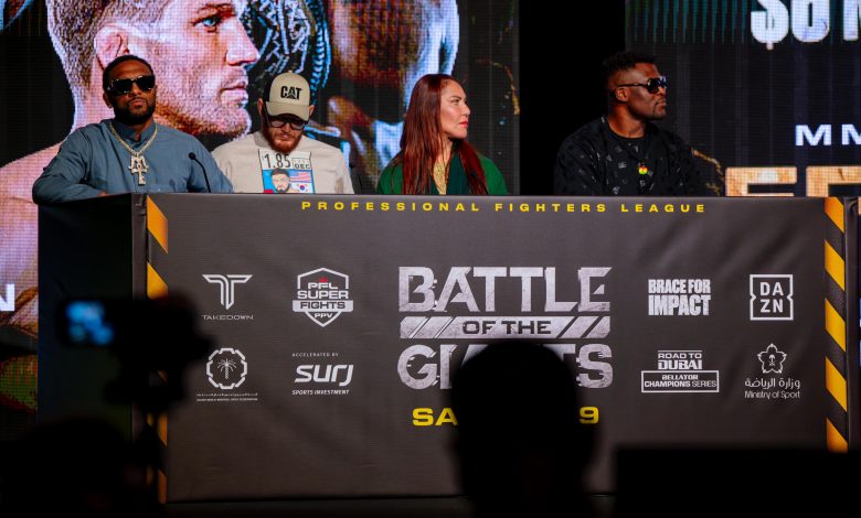 الرياض – غلوبل – عقدت رابطة المقاتلين المحترفين (PFL) لمنطقة الشرق الأوسط وشمال أفريقيا، مساء اليوم مؤتمراً صحفياً وسط حضور إعلامي محلي وعالمي كبير في “ميادين – الدرعية” بالرياض، للكشف عن “معركة العمالقة” التي تنطلق مساء السبت في الرياض، في حدث هو الأكبر والأضخم في تاريخ الفنون القتالية المختلطة لمنظمة المقاتلين المحترفين، في منطقة الشرق الأوسط، حيث سيجمع أساطير اللعبة من المقاتلين والملاكمين.