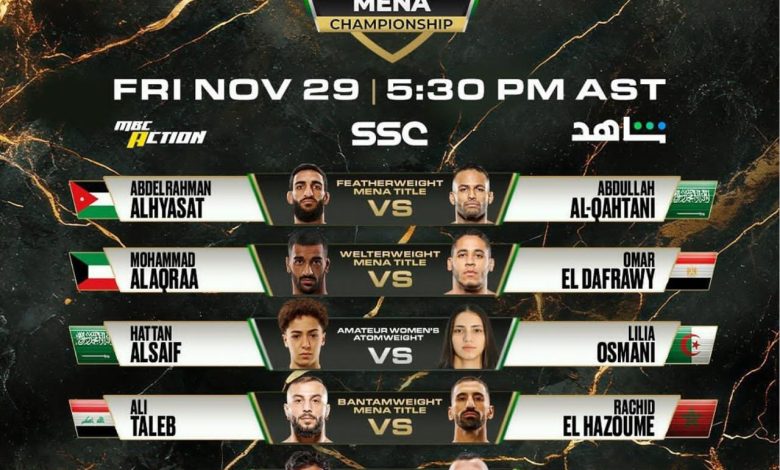 الرياض – غلوبل- تعقد رابطة المقاتلين المحترفين PFL لمنطقة الشرق الأوسط وشمال إفريقيا، مؤتمراً صحفياً عند الساعة 1:30 من ظهر يوم الثلاثاء القادم 26 نوفمبر في قاعة اجتماعات فندق راديسون بلو, شارع الملك عبدالعزيز، الرياض , للحديث عن نهائي دوري(PFL) المقرر يوم 29 الجاري.