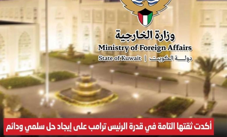 عاجل – الكويت ترحّب وتشيد بالجهود الأميركية لإنهاء الحرب على قطاع غزة. أكدت ثقتها التامة في قدرة الرئيس ترامب على إيجاد حل سلمي ودائم