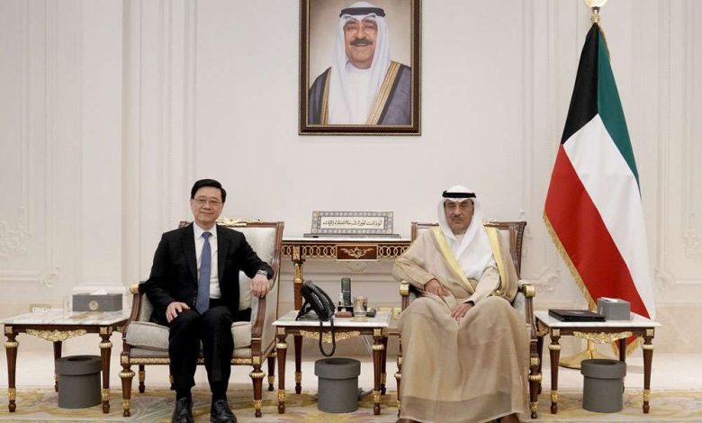 استقبل سمو ولي العهد الشيخ صباح خالد الحمد الصباح حفظه الله بقصر بيان صباح اليوم بحضور معالي رئيس مجلس الوزراء بالإنابة الشيخ فهد يوسف سعود الصباح استقبل سموه حفظه الله صاحب السعادة السيد جون لي كاتشيو رئيس منطقة هونغ كونغ الإدارية والوفد المرافق وذلك بمناسبة زيارته للبلاد.