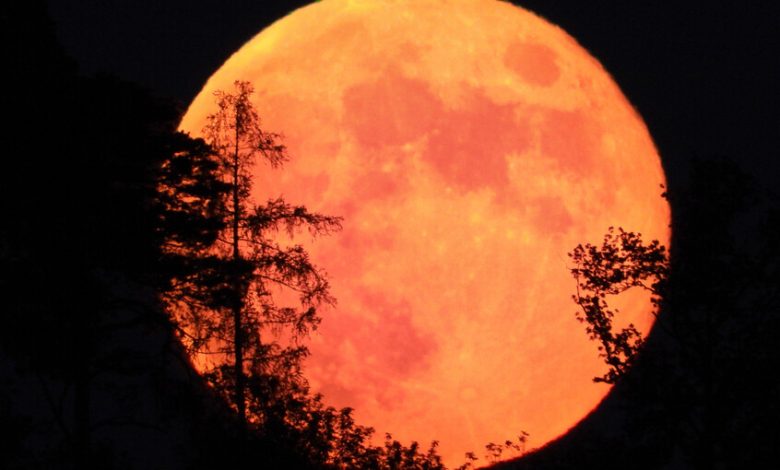 مشهد فلكي استثنائي.. “قمر الفراولة” يلامس الأفق في عرض سماوي نادر