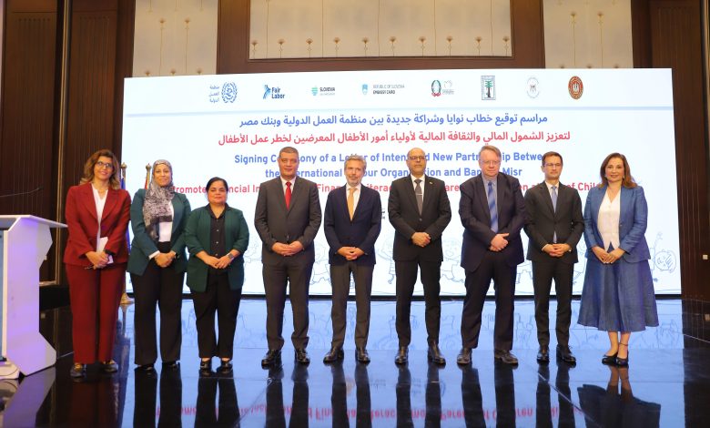 في اطار خطة بنك مصر لدعم جهود الدولة لتعزيز الشمول المالي والقضاء على عمل الأطفال، قام البنك مؤخراً بتوقيع بروتوكول تعاون مع منظمة العمل الدولية ، وذلك ضمن إطار مشروعات المنظمة لمكافحة عمل الأطفال،حيث قامت هند فهمي رئيس قطاع الشمول المالي والتمويل العقاري ببنك مصر بتوقيع بروتوكول التعاون مع إيريك أوشلان- مدير مكتب منظمة العمل الدولية بمصر، وحضر التوقيع لفيف متميز من قيادات بنك مصر ومنظمة العمل الدولية وممثلي السفارة الإيطالية و سفارة سلوفينيا بجمهورية مصر العربية.
