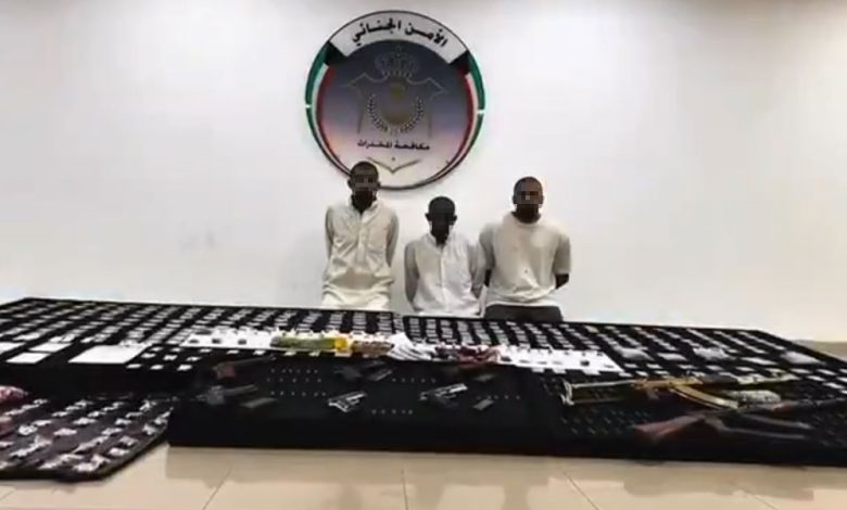 أعلنت وزارة الداخلية تمكن قطاع الأمن الجنائي ممثلا بالإدارة العامة لمكافحة المخدرات من ضبط تشكيل إجرامي مسلح مكون من ثلاثة متهمين من المقيمين بصورة غير قانونية بعد توافر الأدلة على تورطهم في حيازة وترويج المواد المخدرة وحيازة أسلحة نارية وذخائر دون ترخيص.