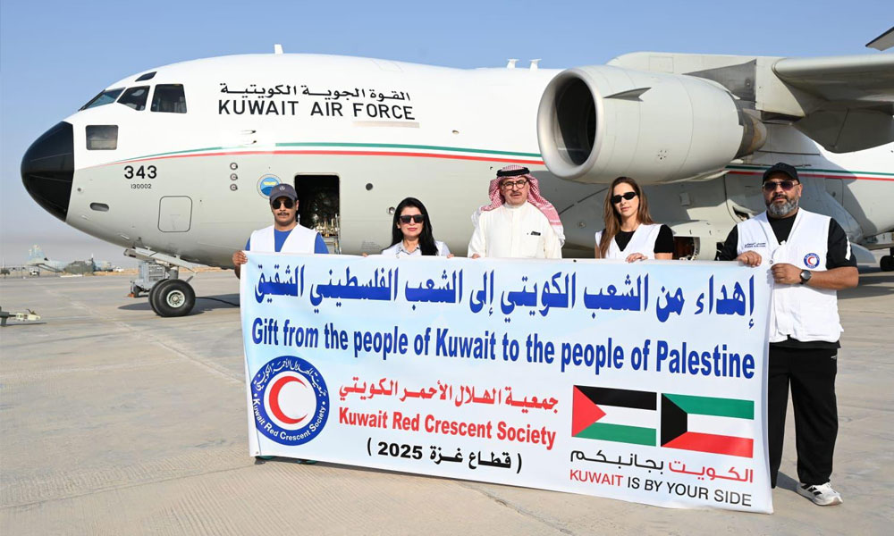 وقال رئيس مجلس إدارة جمعية الهلال الأحمر الكويتي خالد المغامس إن “هذه الطائرة محملة بكميات كبيرة من المساعدات الاغاثية تمهيدا لإدخالها إلى قطاع غزة عبر المعابر المصرية بالتنسيق مع سفارة الكويت في القاهرة وجمعية الهلال الأحمر الفلسطيني.