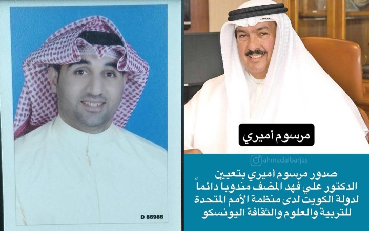 بمناسبة تعيينه مندوباً دائماً لدولة الكويت لدى منظمة الأمم المتحدة للتربية والعلم والثقافة (اليونسكو).