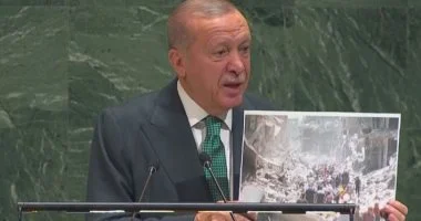 وأضاف أردوغان خلال كلمته أمام الجمعية العام للأمم المتحدة، أنه يأسف لغياب الرئيس الفلسطيني محمود عباس عن أعمال الجمعية العامة للأمم المتحدة، داعيا باقى الدول للاعتراف بدولة فلسطين.