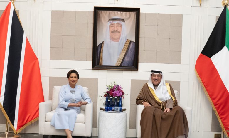 استقبل ممثل حضرة صاحب السمو أمير البلاد الشيخ مشعل الأحمد الجابر الصباح حفظه الله ورعاه، سمو ولي العهد الشيخ صباح خالد الحمد الصباح حفظه الله اليوم معالي كاملا بيرساد رئيسة الوزراء في جمهورية ترينيداد وتوباغو الصديقة وذلك على هامش اجتماعات الدورة 80 للجمعية العامة للأمم المتحدة في مقر وفد دولة الكويت الدائم لدى الأمم المتحدة بمدينة نيويورك الأمريكية. وتم خلال اللقاء بحث العلاقات بين دولة الكويت وجمهورية ترينيداد وتوباغو الصديقة وسبل تطويرها بما يخدم مصالح البلدين والشعبين الصديقين.