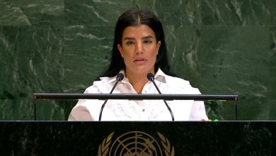 السكرتير الثاني بوفد الكويت الدائم لدى الأمم المتحدة وفيقة الملا في الجمعية العامة للأمم المتحدة